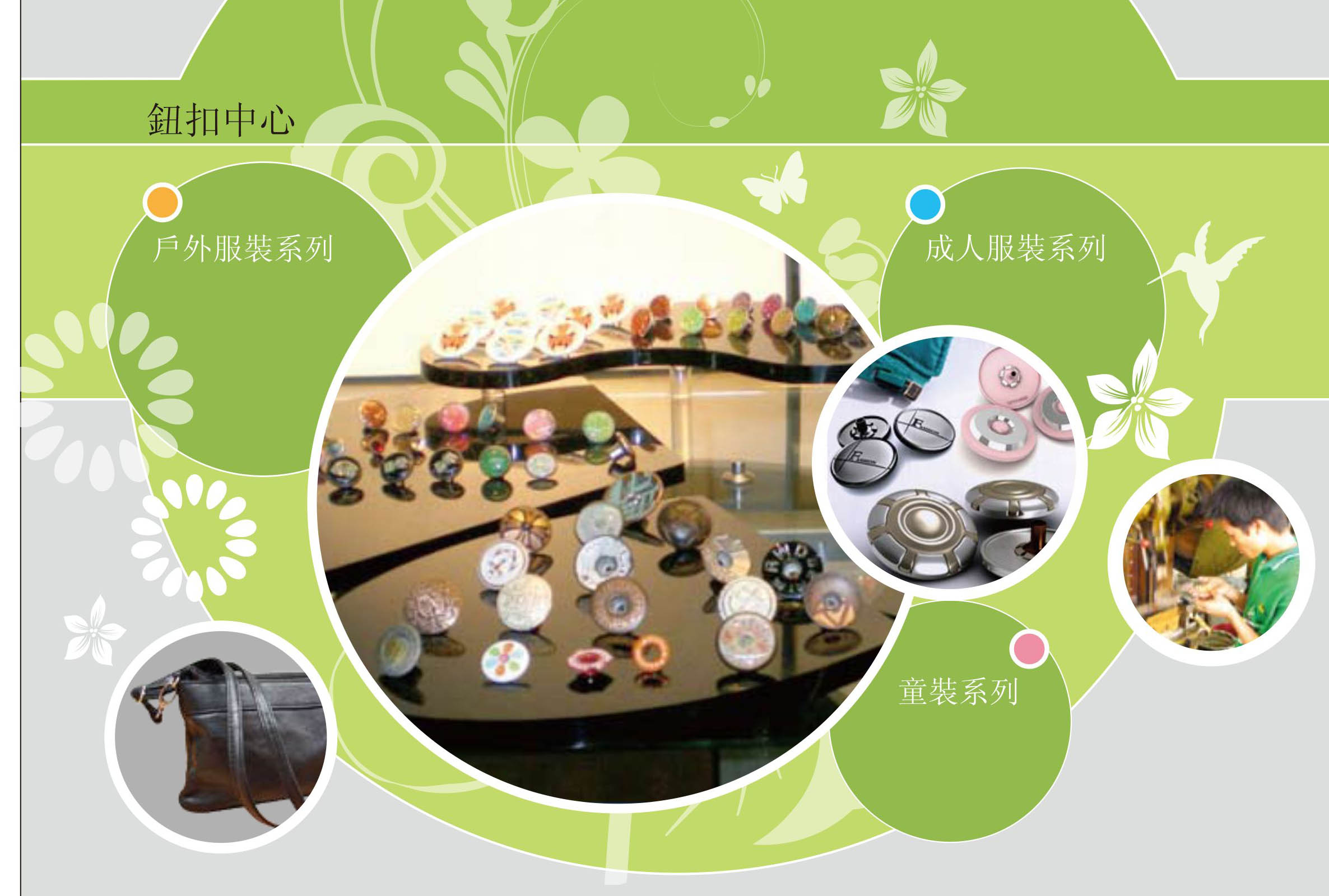 服裝行業其產品的特性有: 功能性+裝飾性。服裝所面向的男女老少,高矮胖 瘦等這些個性化不同。現代服裝的主要功能不再是 保暖,現代人的品味,時髦,時代感等都來自于服 裝的選擇和搭配。 現今服裝行業的兩個環節,一是生產環節的標裝化 和系列化,這讓服裝行業走上大規模發展之路。二 是銷售環節,服裝和個性化需求突出,兼具功能性 和裝飾性,讓消費者選擇到適合自已的產品並且盡 快作出購買決定。 所以在配搭合適的鈕扣,更是發揮出服裝本身的兩 大主要元素: 功能性+裝飾性,是不可缺少的一環。  |